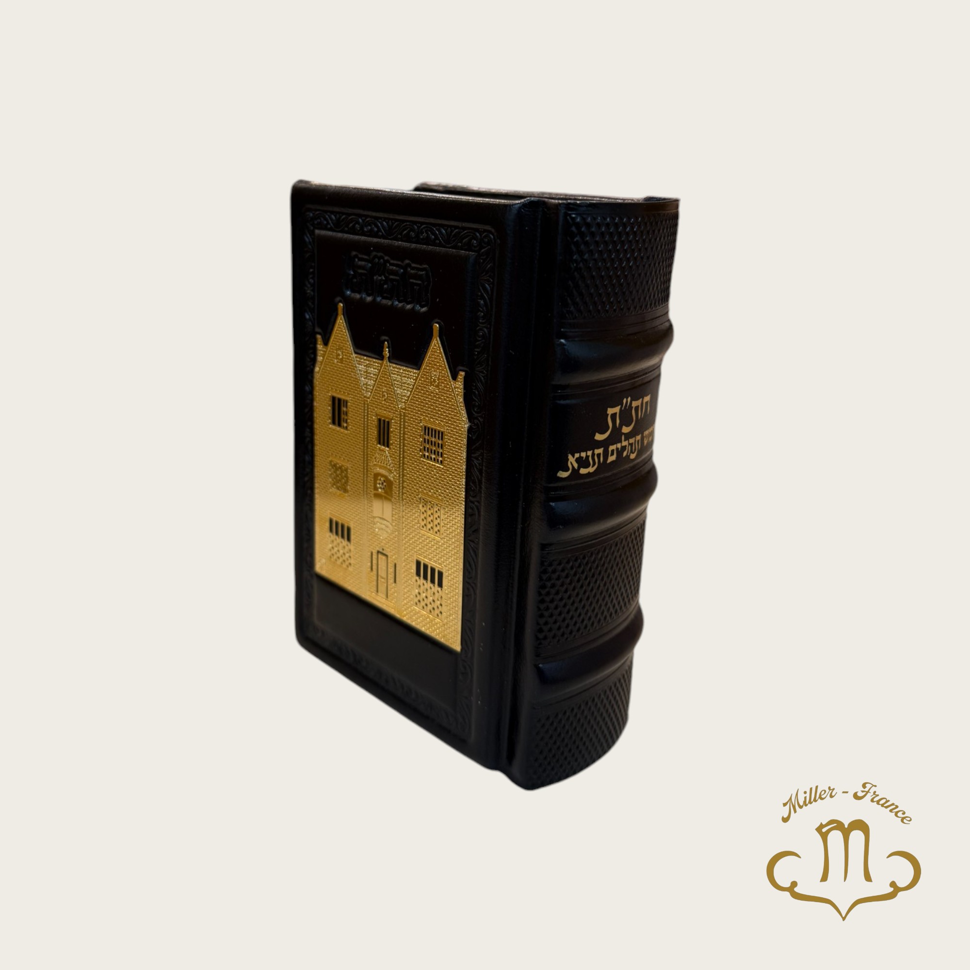 Hitat cuir noir plaque dorée