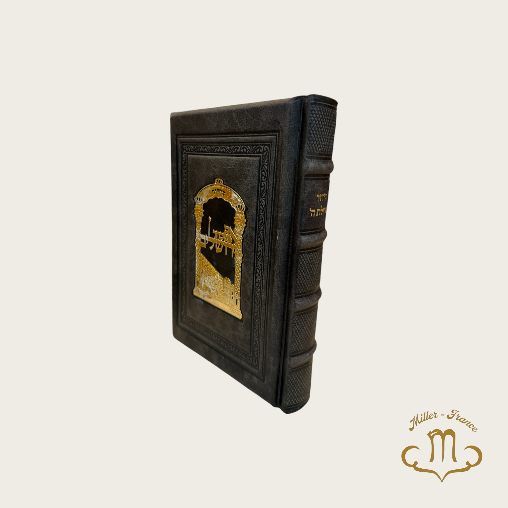 Sidour Tehilat Hachem Cuir gris vieilli plaque dorée